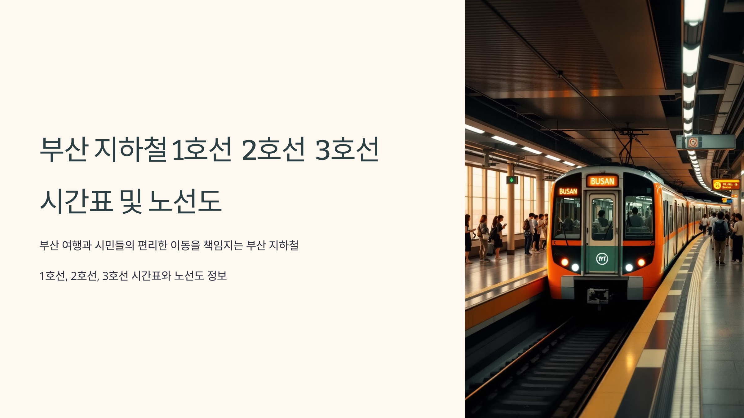 부산 여행과 시민들의 편리한 이동을 책임지는 부산 지하철! 오늘은 부산 지하철 1호선, 2호선, 그리고 3호선의 시간표와 노선도 정보를 상세하게 안내해 드립니다. 부산 지하철을 이용한 더욱 빠르고 편리한 이동 계획을 세워보세요.